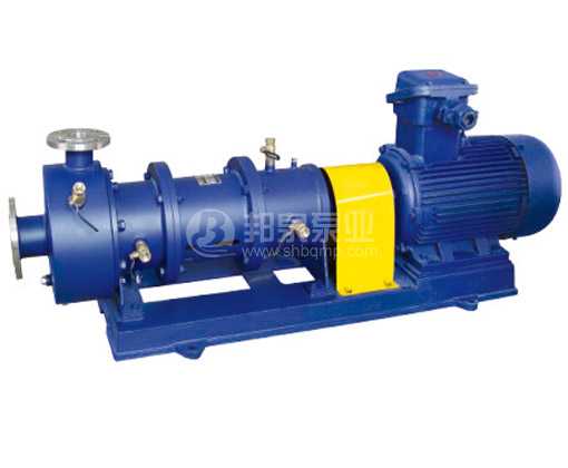 CQB-G型不銹鋼高溫保溫磁力泵(簡稱高溫磁力泵)通常由電機、水冷卻裝置、磁力偶合器和耐腐蝕離心泵四大部分組成,根據不同要求另可做成不銹鋼高溫防爆磁力泵。高 溫磁力泵其主要特點是利用磁力偶合器傳遞動力。當電動機帶動磁力偶合器的外磁鋼旋轉時,磁力線穿過間隙和隔離套,作用于內磁鋼上,使泵轉子與電動機同步旋轉,無機械接觸地傳遞扭矩。在泵的動力輸入端,由于液體被封閉在靜止的隔離套內,沒有動密封因而無泄漏。磁力偶合器的磁性材料采用耐高溫型稀土永磁材料, 能承受280度以下的高溫介質而保持強大的磁力扭矩。在電機與磁力偶合器之間加裝了水冷卻裝置,防止泵送高溫介質之熱量傳導至電機,以保持電機的正常運行,從而達到無泄漏輸送高溫介質。